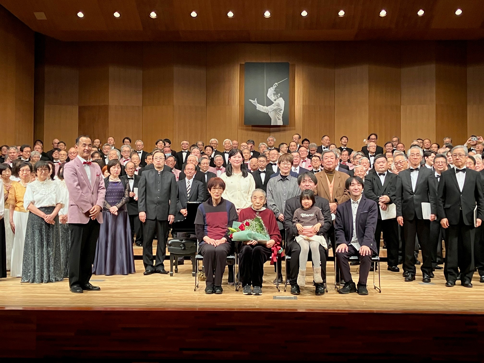 指揮者の福永陽一郎先生(1926~90)の生誕100年記念コンサート「陽ちゃんといっしょ」が1月10日、藤沢市民会館大ホールで開催されました。早稲田大学グリークラブOB会からも有志60人余りが出演し、「O Holy Night」、ショスタコーヴィチ「革命詩人による“十の詩曲”」より「歌」(安田二郎作詞)を演奏しました。